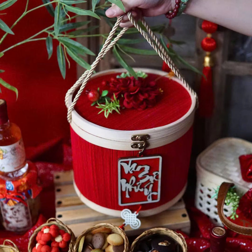 Cesta de Regalo de Bambú, Cesta de Bambú Hecha a Mano Sostenible para Envolver Regalos, Exhibición Decorativa, Vietnam