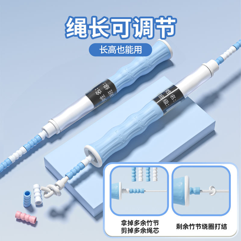 Cuerda para saltar con diseño de bambú para niños, longitud ajustable, equipo de ejercicio físico para niños, material ABS