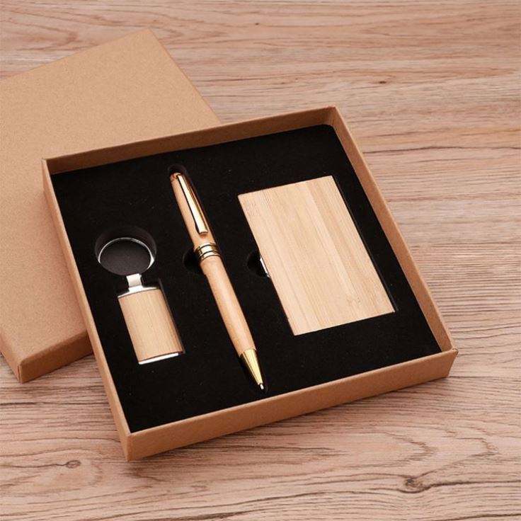 Bamboo Keychain Set Business Card Box Gift Enterprise Company Staff Meeting Business Gift Set of Bamboo and Wood
