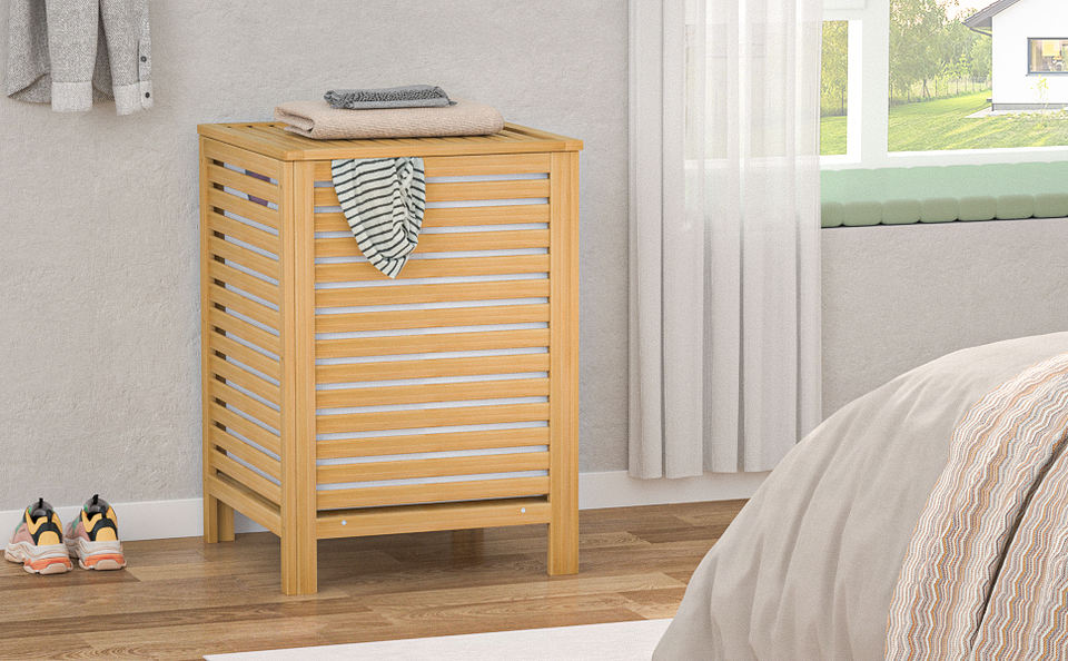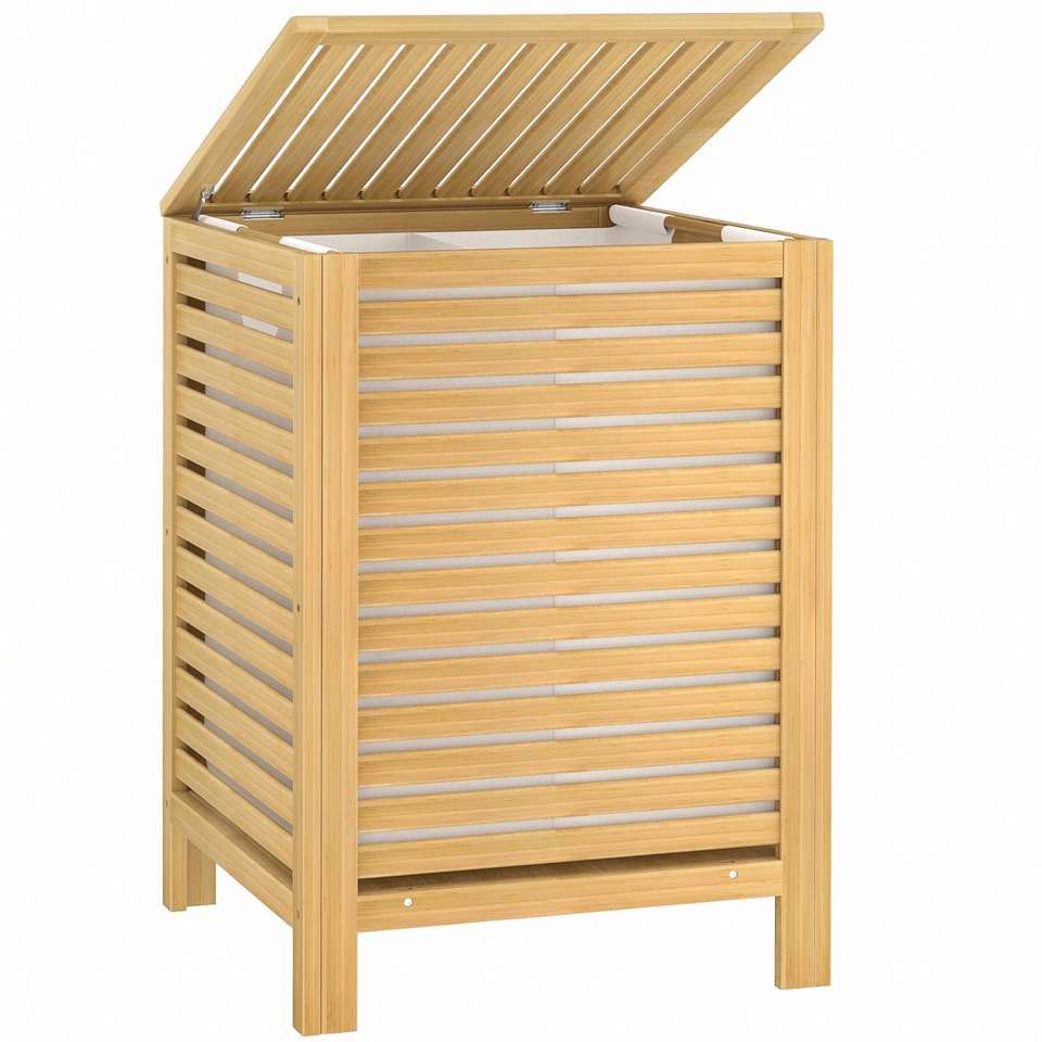 Cesto para Ropa Sucia de Bambú, Cesto para Ropa Sucia de 2 Secciones y 120L con Tapa y Bolsa Interior Extraíble, Cesto para Ropa Sucia Grande con Separador
