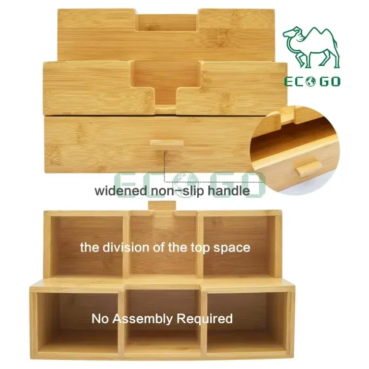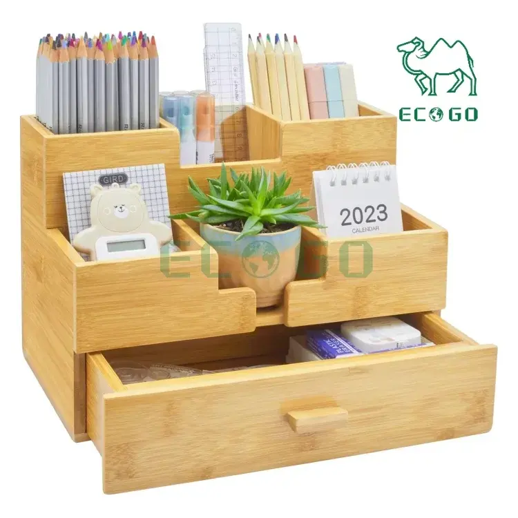 Organizador de bolígrafos de bambú, organizador de escritorio, cajón de almacenamiento de maquillaje con cajón para portalápices de escritorio