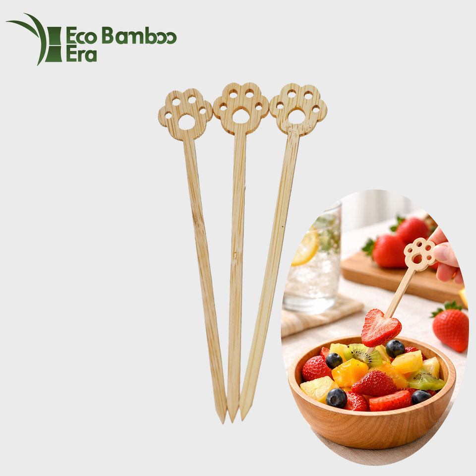 Pincho de hamburguesa de fruta desechable personalizado con púas de Bambú