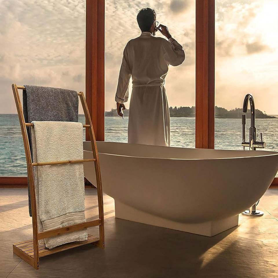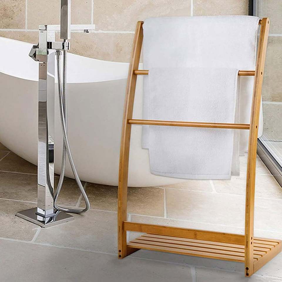 Soporte para Edredones o Mantas de Bambú para Sala de Estar o Dormitorio, Toallero Extra Alto Independiente para Baño