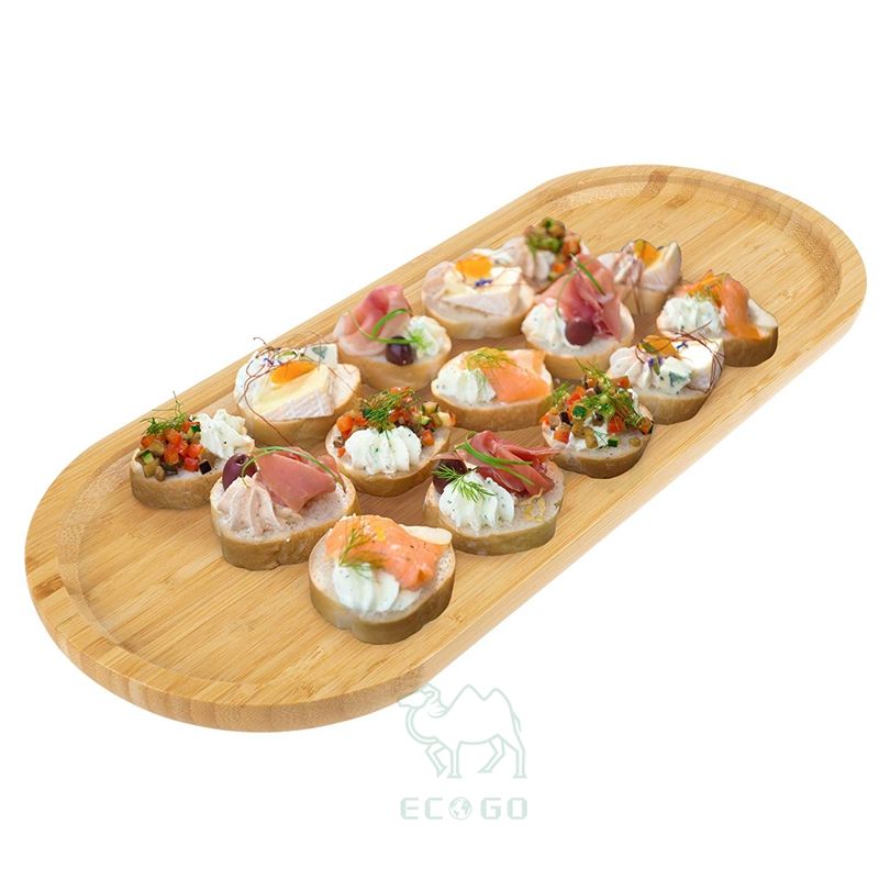Bandeja de bambú para servir, vajilla ovalada de madera, tabla de queso y pan o plato de aperitivo y charcutería