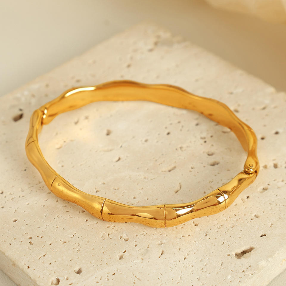Brazalete de Bambú en Forma de Anillo, Chapado en Oro y Plata, Acero de Titanio, Joyería de Moda Unisex