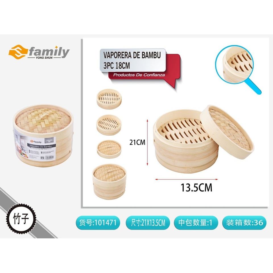 Vaporera de bambú 21cm 3 piezas para cocinar y cocinar al vapor