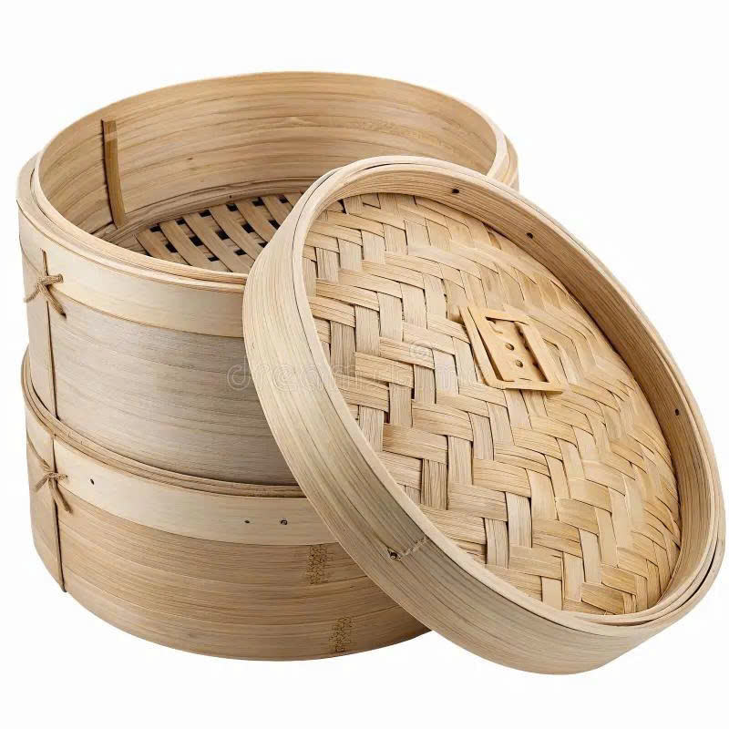 Vaporera de Bambú para Carne y Dim Sum, Cesta Vaporera de Bambú Natural, Vaporera de Bambú para Empanadillas, Juego de Vaporeras de Bambú Ecológicas para Alimentos