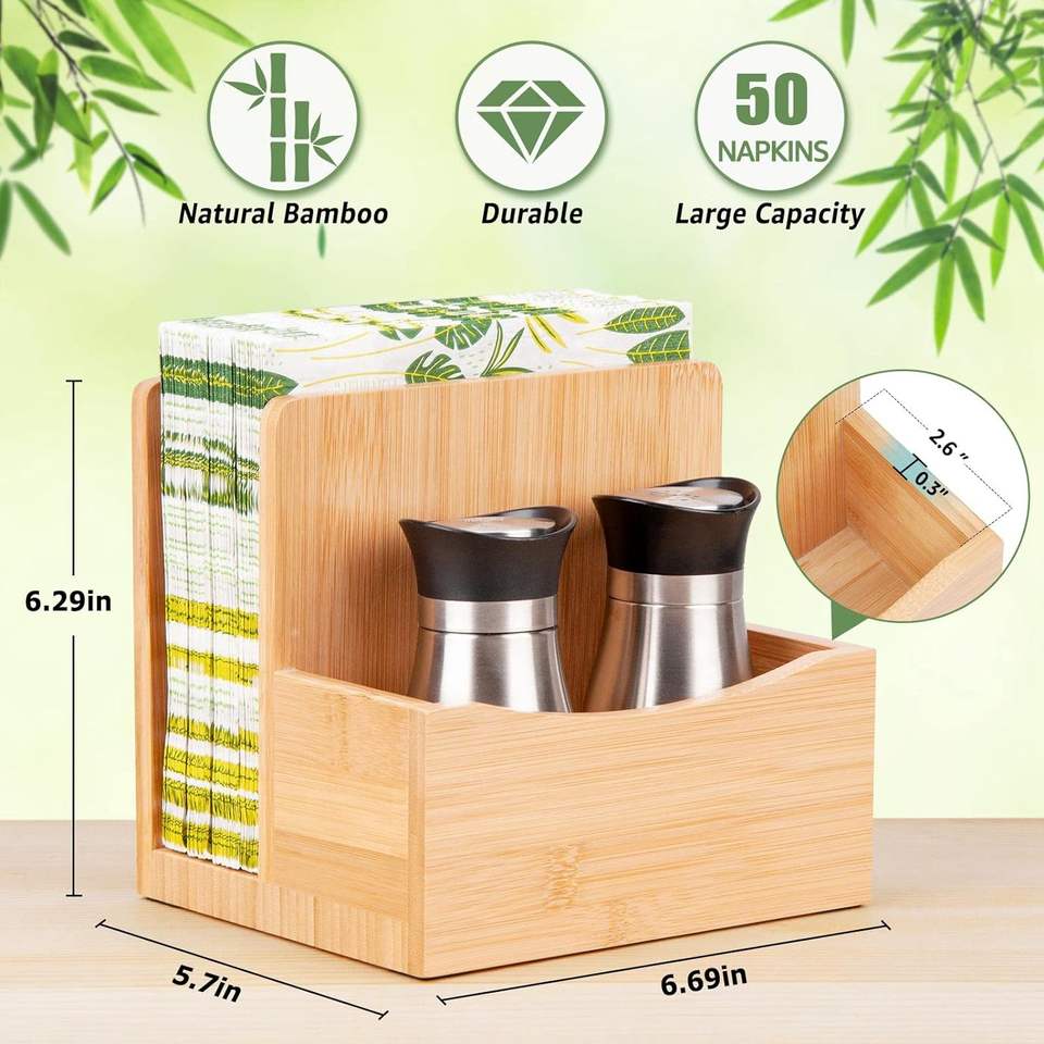 Nombre del Producto:Servilletero de bambú para sal y pimienta