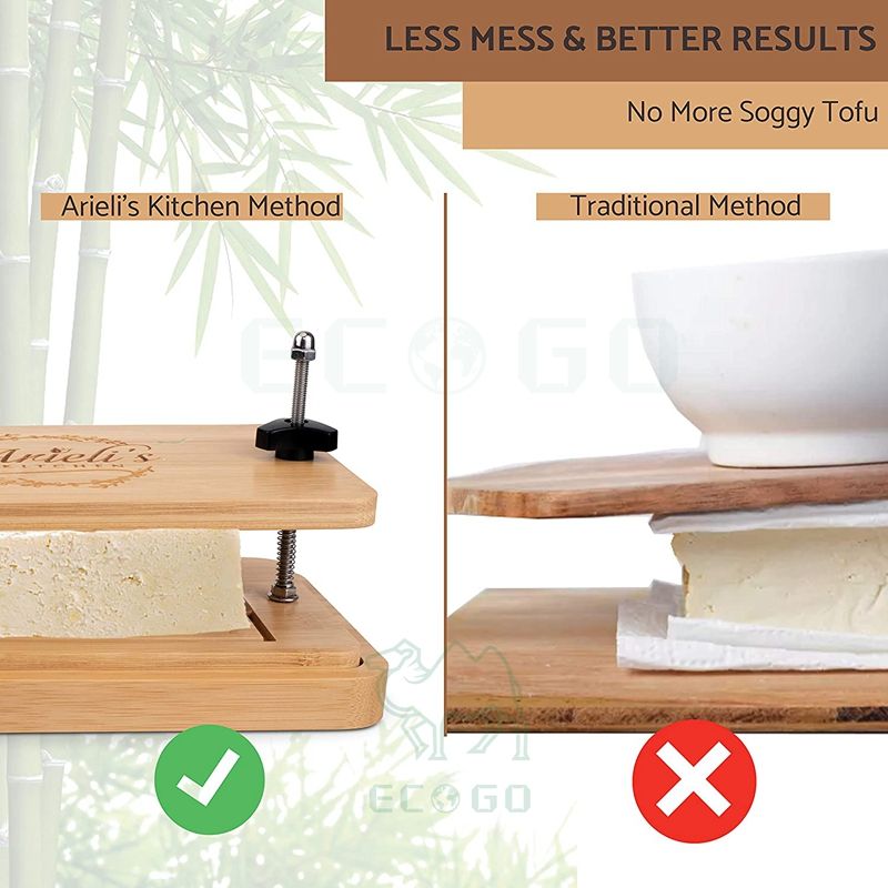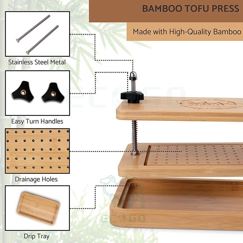 Prensa de Tofu de Bambú Ecológica ECO GO, Máquina con Colador Incorporado y Bandeja de Goteo para una Fácil Eliminación de Agua