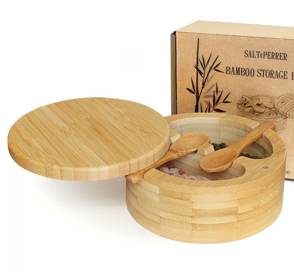 Nombre del producto:Contenedores para Almacenamiento de Alimentos con Tapas de Bambú - Caja de Bambú Triple para Sal