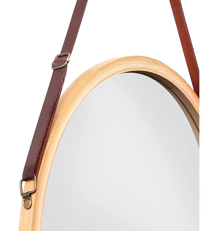 Espejo colgante redondo de pared de bambú con cadena, espejo de baño