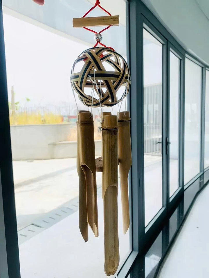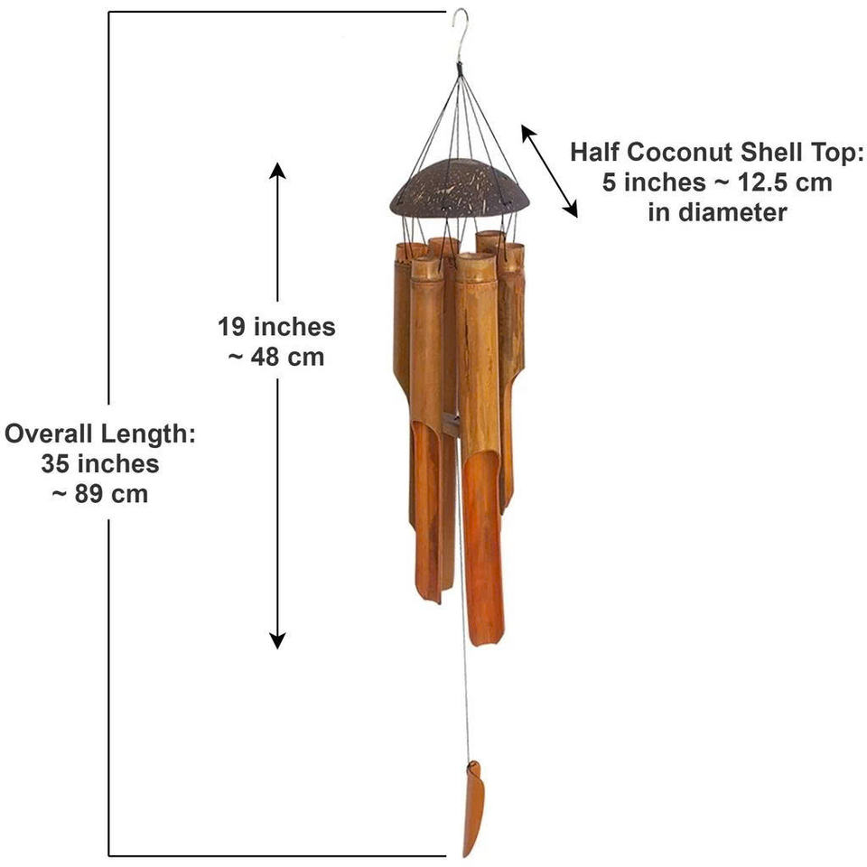 Campana de Viento de Bambú con Cáscara de Coco, Tamaño Mediano, Decoración Feng Shui, Sonido Melodioso, Decoración Colgante para Exteriores de Vietnam