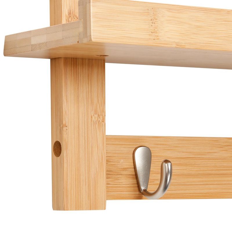 Bambú Madera 5 Ganchos Soporte de montaje en pared Abrigo de madera Sombrero Percha