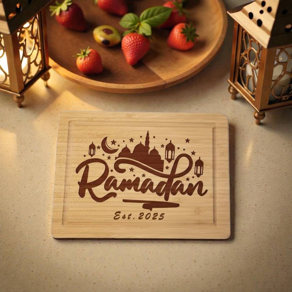 Palabra clave:Tabla de cortar de madera hecha a mano con temática de Ramadán