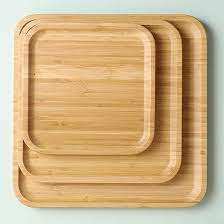 Bandeja de madera de bambú para servir pasteles de té, platos, platillos con borde rectangular redondo y bandeja de más formas