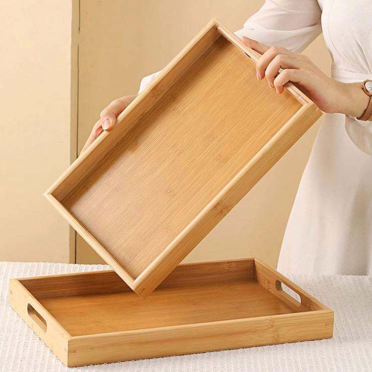 Bandeja de bambú y madera Bandeja de té rectangular Bandeja de barbacoa comercial de comida de luna de madera maciza