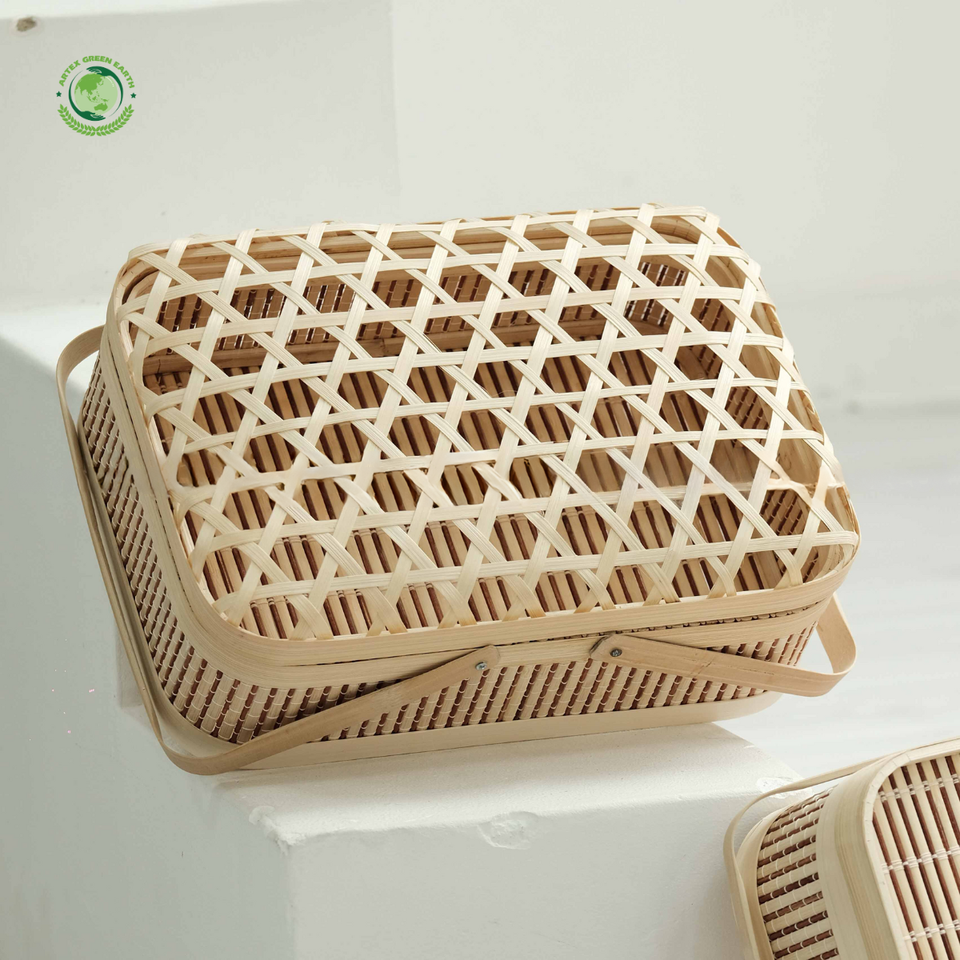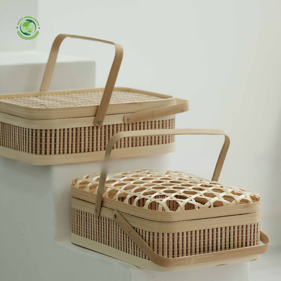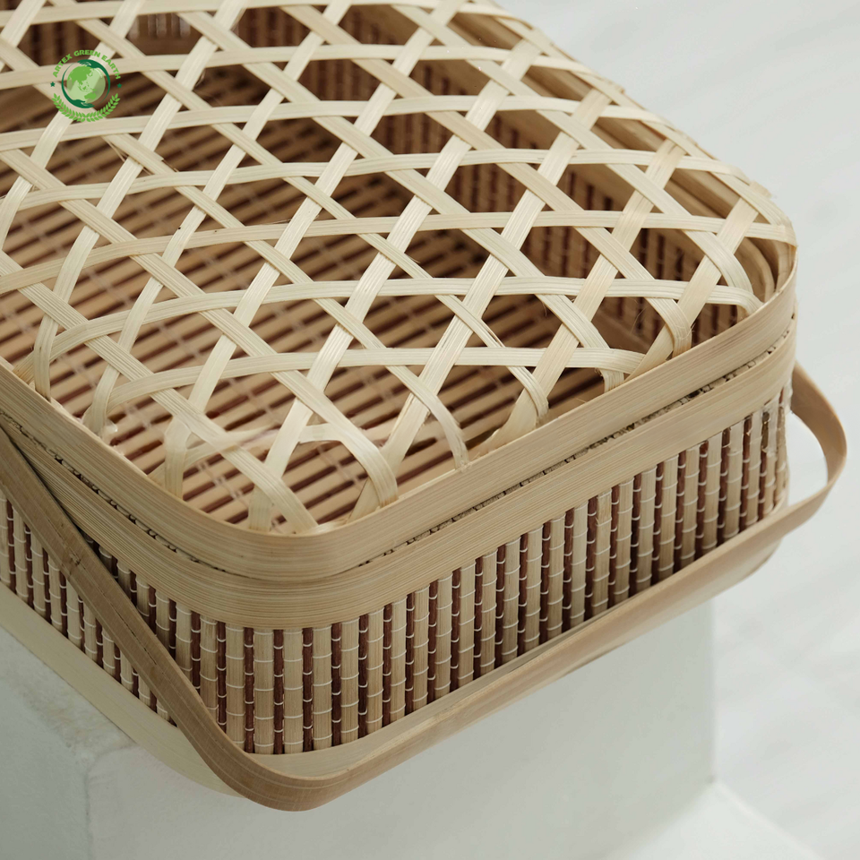 Nombre del producto:Caja de regalo de bambú con tapa tejida y mango elegante