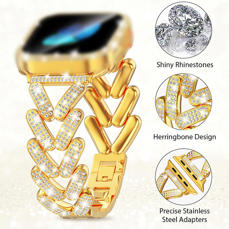 Correa y carcasa diseñadas para Apple Watch Series 38mm 40mm 41mm 42mm 44mm 45mm Correa de metal para mujer para IWatch 9 8 7 6 5 4 SE SE2 3 2 1