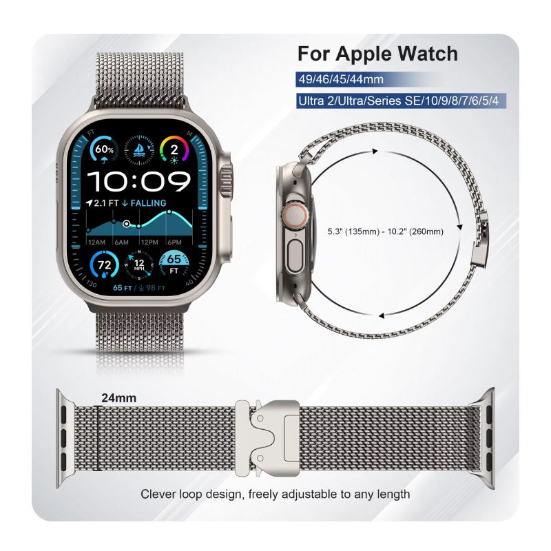 Correa para Apple Watch Series Ultra 10 9 8 7 6 5 SE Correa Pulsera de paracaídas Malla milanesa Correa de acero inoxidable