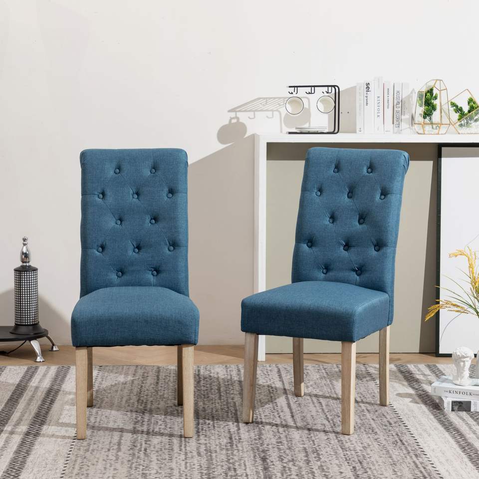 Juego de Comedor Banff de 5 Piezas, Mesa Redonda Azul con Base Cruzada y 4 Sillas Tapizadas para el Comedor