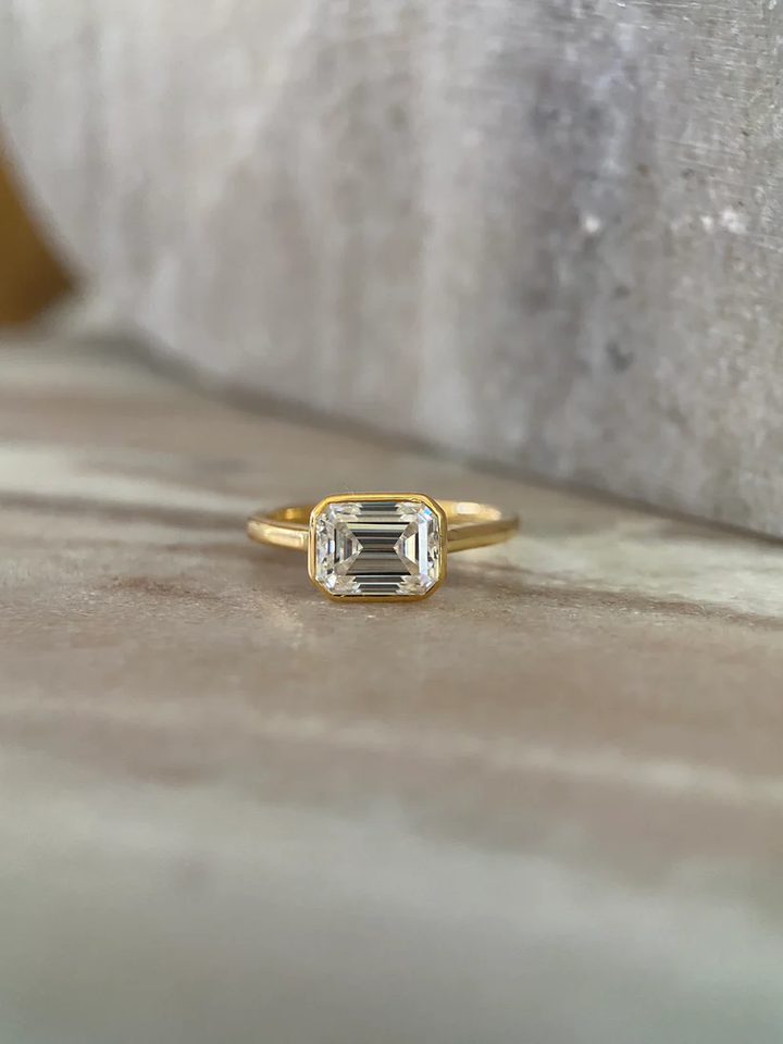 Anillo Solitario de Circonita Cúbica con Certificado IGI, Edición Emerald E2W, Plata de Ley 925, 2 Quilates, Oro Amarillo, Estilo Étnico, para Fiestas