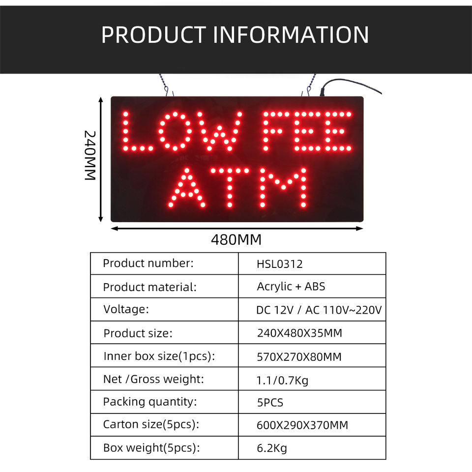 Letrero Luminoso LED de 9*19 Pulgadas para Banco, Letrero LED Personalizado para Cajero Automático con Bajo Costo, Letreros LED Animados Intermitentes