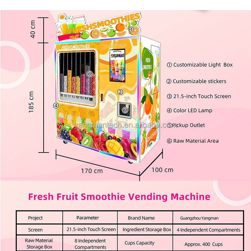 Máquina Expendedora Comercial de Smoothies que Funciona con Billetes y Monedas, con Integración SDK, Ideal para Campus, Estaciones y Hoteles