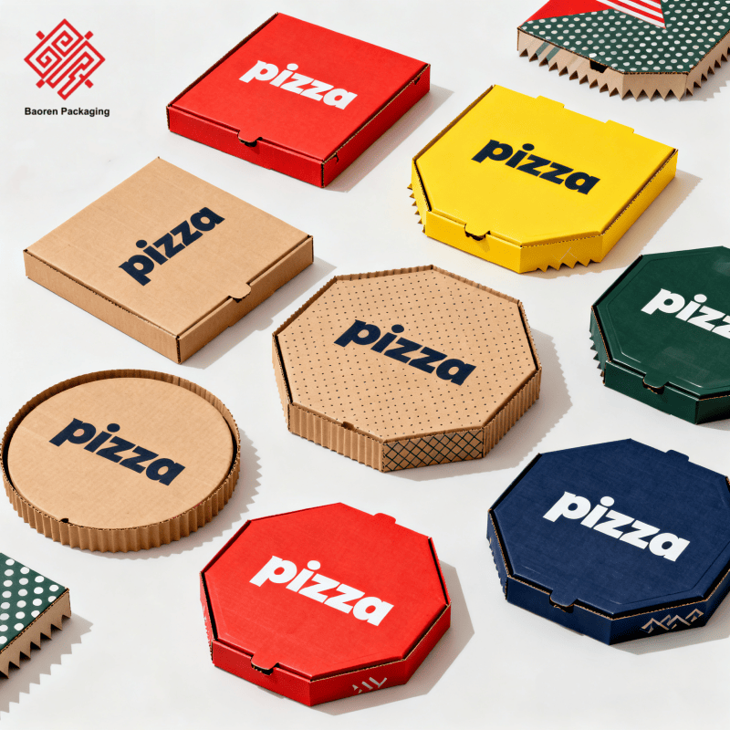 Mini cajas de pizza cuadradas ecológicas biodegradables Baoren de 10 "y 12" para goma de mascar y entrega de sushi con impresión de logotipo personalizado