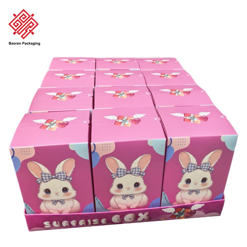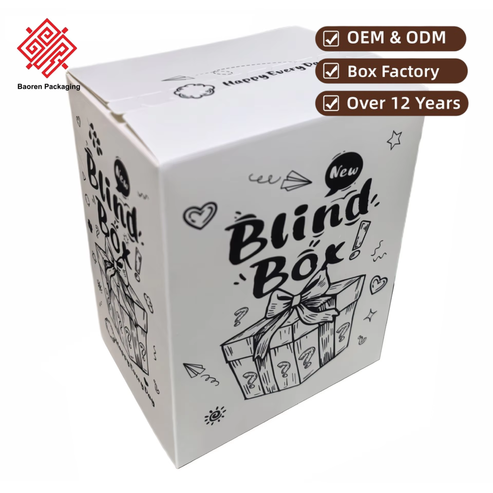 Baoren personalizado vacío felpa lBind caja hecha a mano DIY taza blanca cartulina caja de embalaje juguete de moda caja ciega con impresión