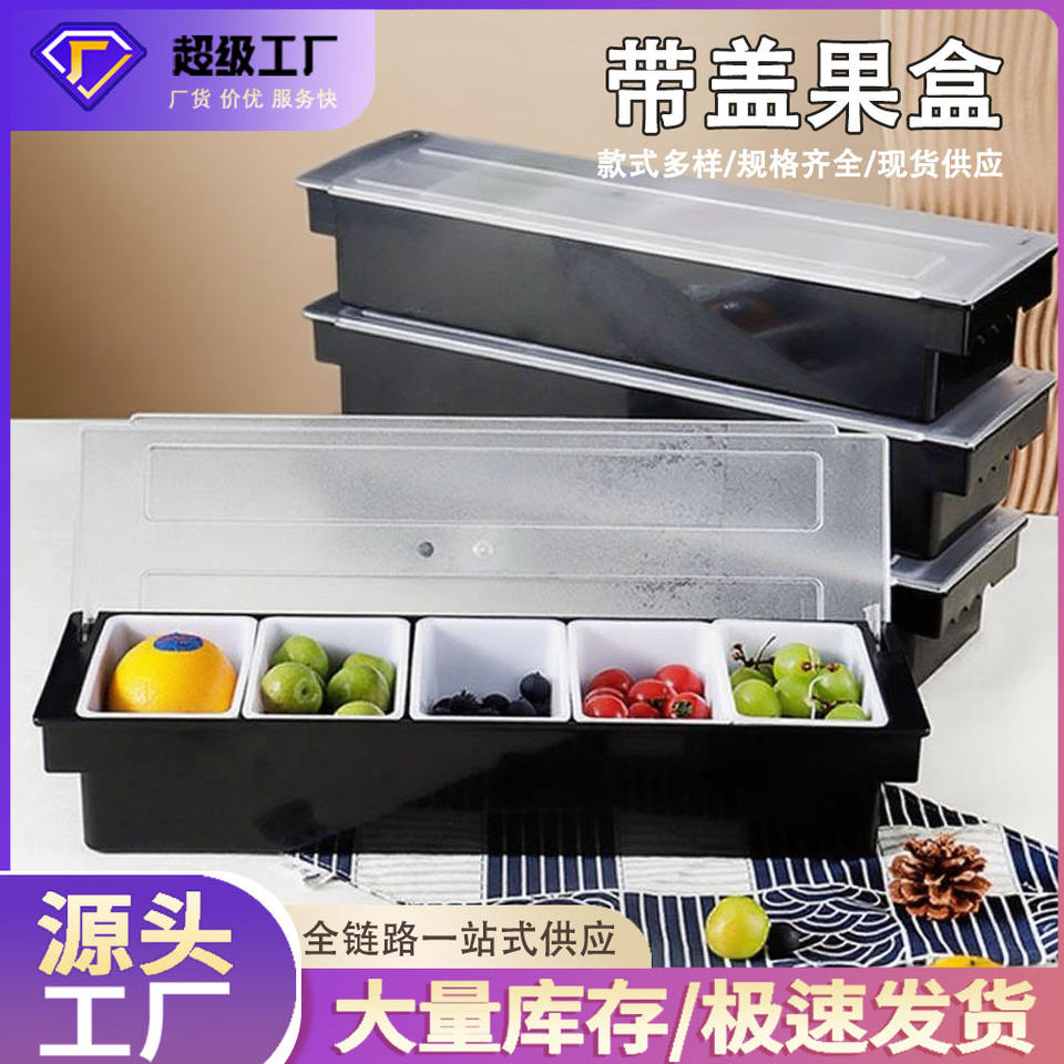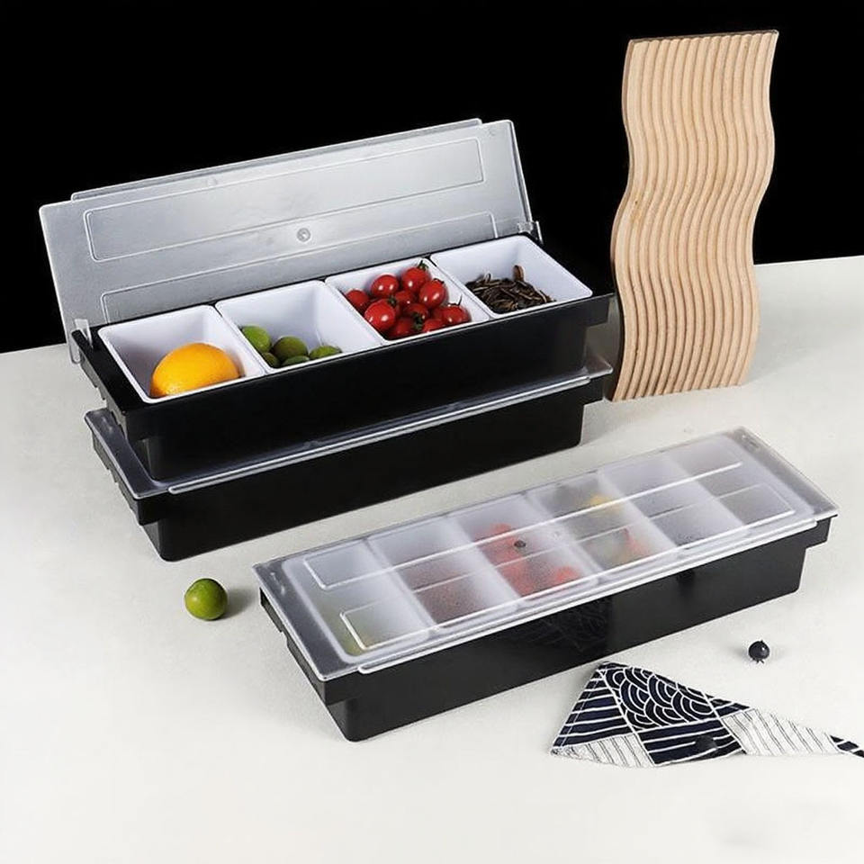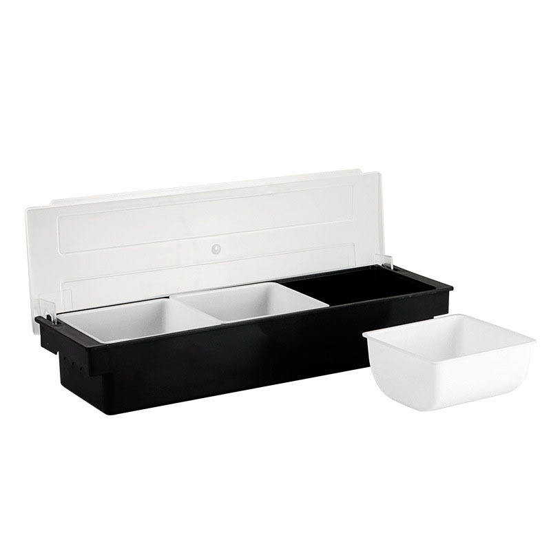 Caja de condimentos para bar, tres compartimentos con tapa para almacenamiento de frutas y condimentos, rectángulo, color sólido, uso en cocina