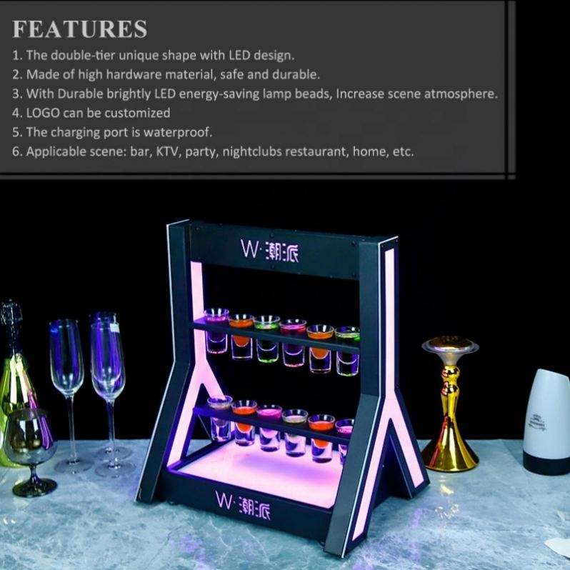Bar discotecas boda personalizado LED soporte bala encimera copa de vino portavasos glorificadores chupito servir estante de exhibición