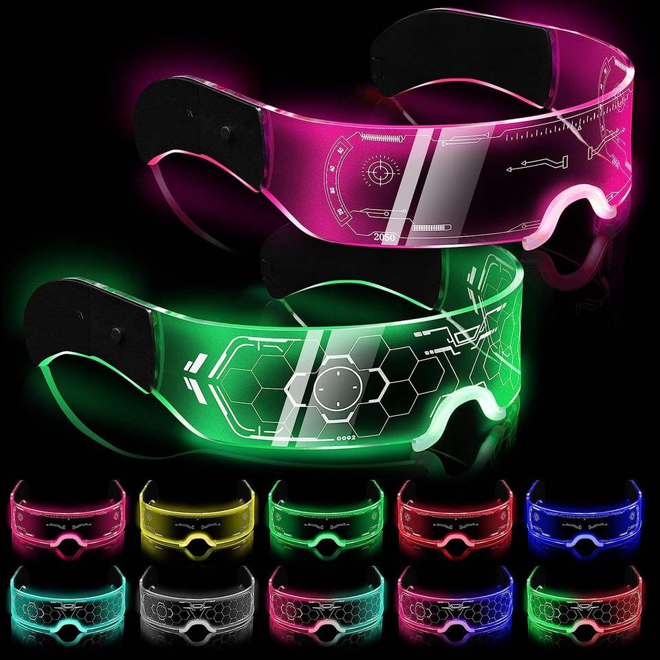 Bar Fiesta Color Tech Glow Gafas Fiesta de Halloween Moda Espectáculo de luces Disfraces Gafas de luz para el cabello Accesorios Gafas luminosas de colores