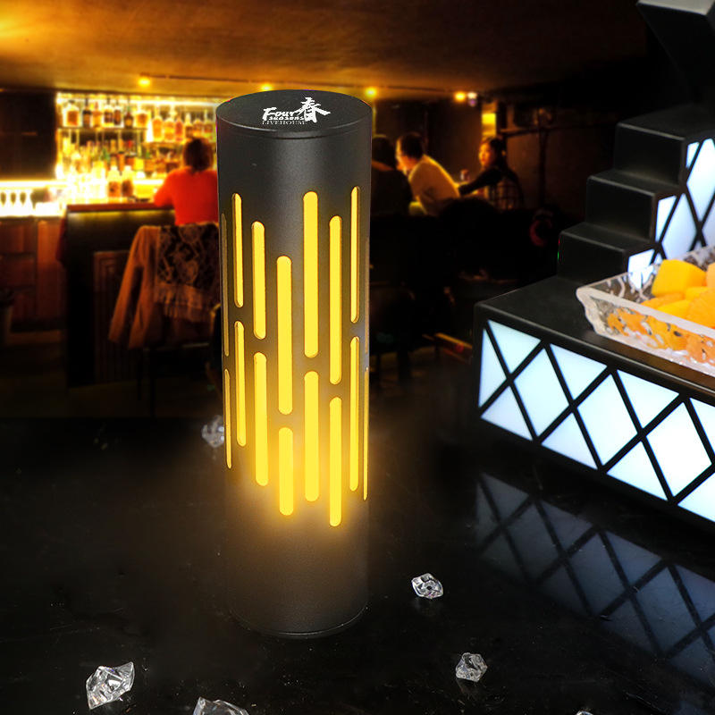 Lámpara de mesa recargable LED cilíndrica decorativa para bar, discoteca o cafetería.