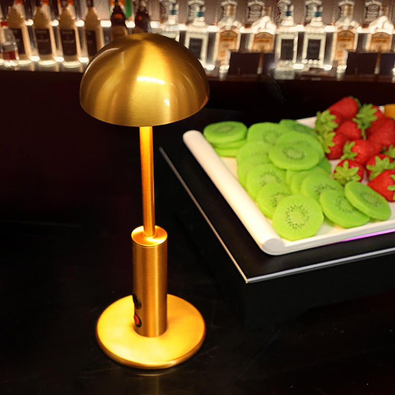 Lámpara de mesa recargable cilíndrica, totalmente de aluminio, con control táctil LED, inalámbrica, para discoteca o cafetería.
