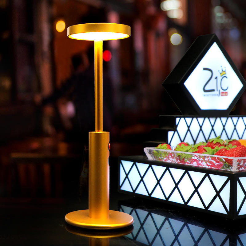Lámpara de Mesa Recargable de Barra, Cilíndrica, Totalmente de Aluminio, LED Inalámbrica, Luz Decorativa para Discoteca o Cafetería