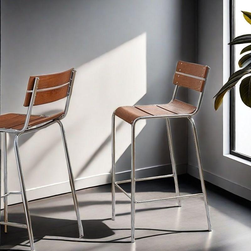 Taburete de Bar con Respaldo de Madera Maciza y Acero Inoxidable, Resistente, para Sala de Estar, Hogar o Cafetería