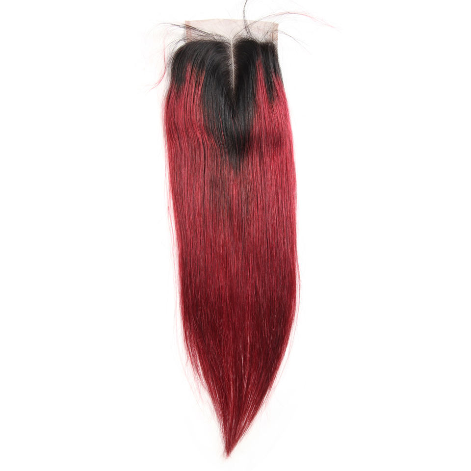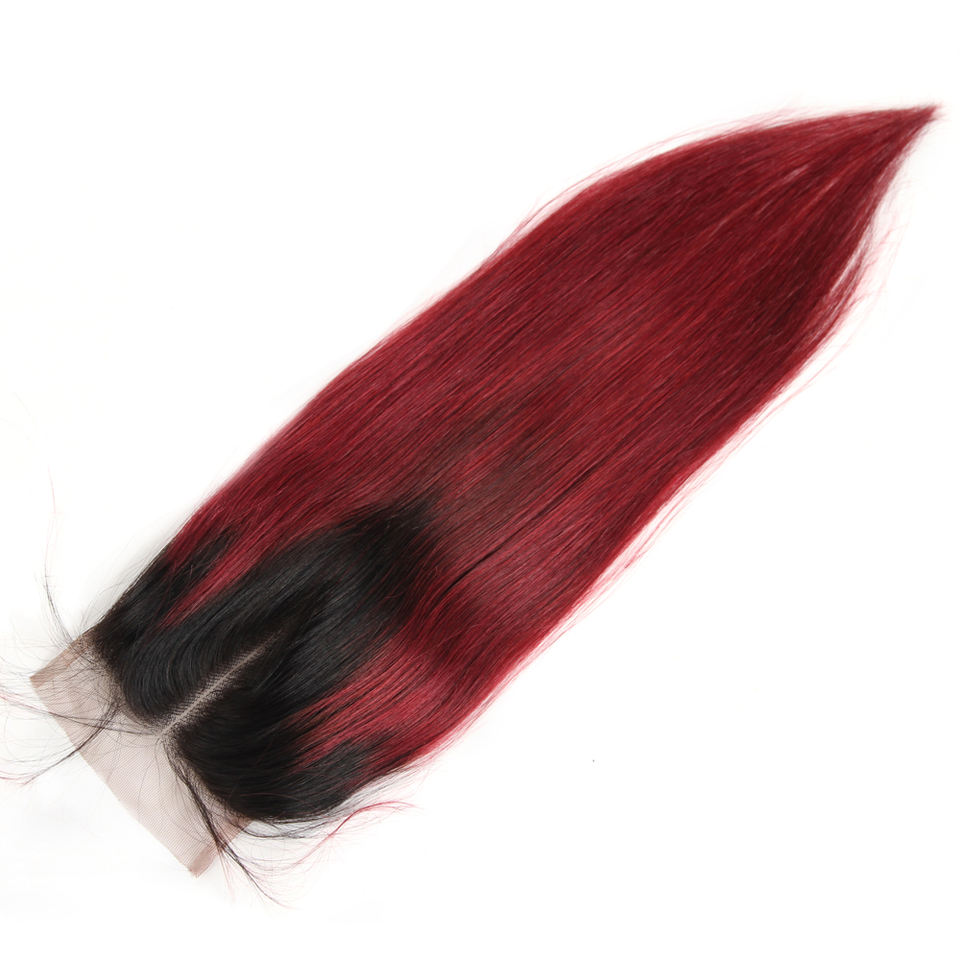 Barato 99J Color indio Cierre del frente del cordón del pelo humano se puso rojo cabello mojado y ondulado