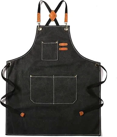 Barber Jean Delantales para Hombres | Delantal de salón de peluquería con bolsillos de cuero para hombres y mujeres