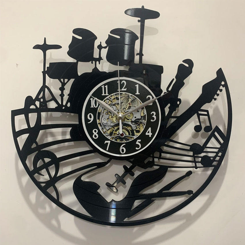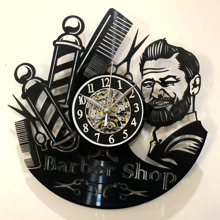 Reloj de Pared de Vinilo Plástico Creativo Personalizado para Diseño de Interiores de Barbería, Analógico, 3D, Retro, Moderno, Negro, con Luz