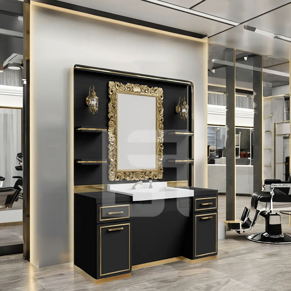 Muebles de Salón de Peluquería de Madera Moderna de la Mejor Calidad de Barber Station con Nuevo Modelo y Diseño