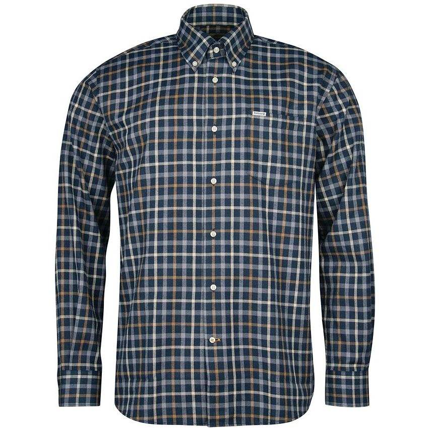 Camisa de Franela Barbour para Hombre, Talla Pequeña, Corte Entallado, Diseño a Cuadros, Tecnología Térmica, Azul, con Botones