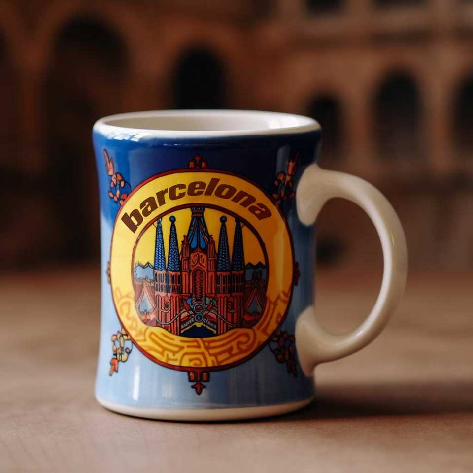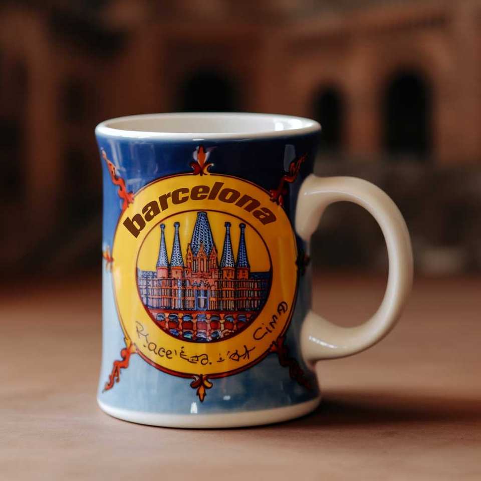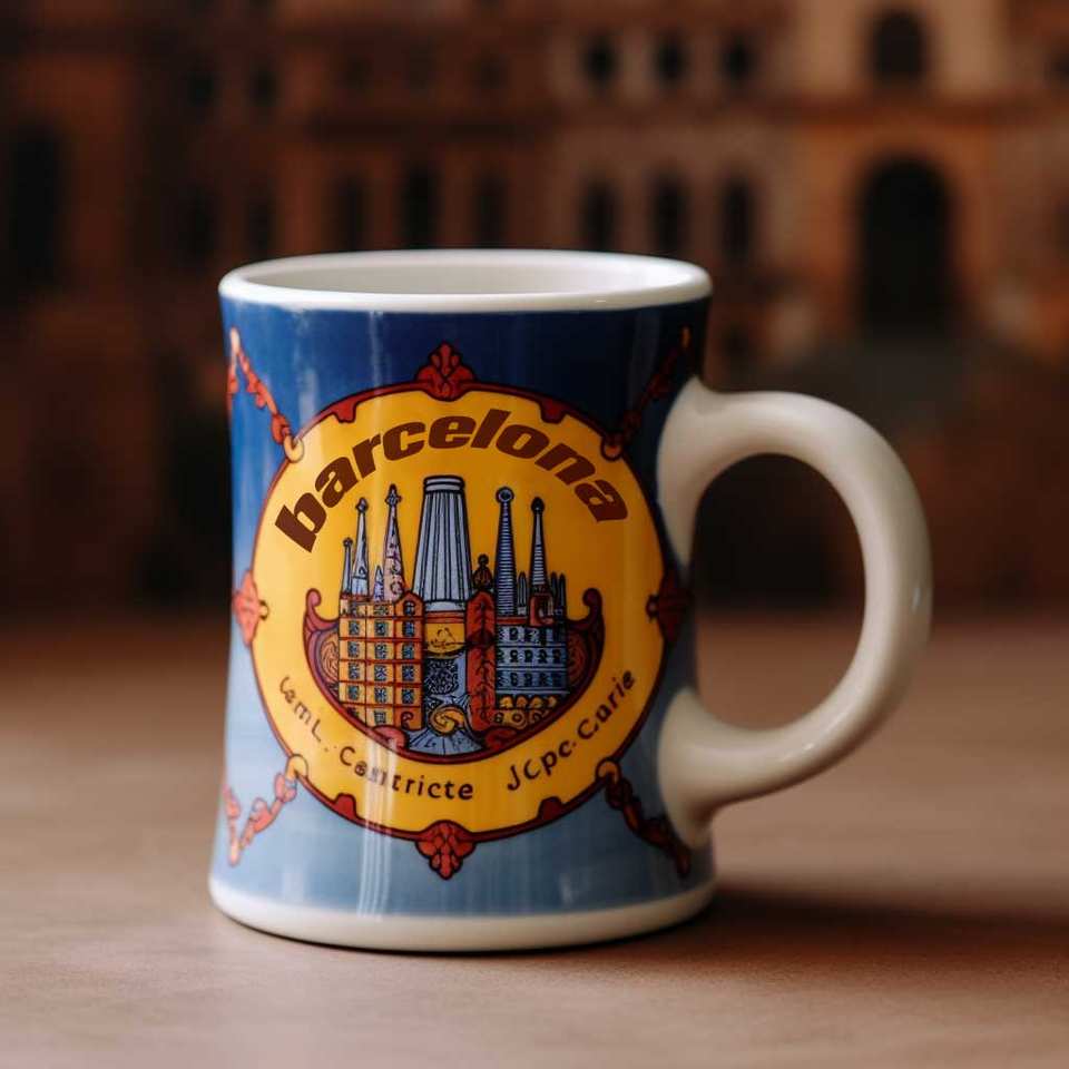 Palabras clave:Taza de coleccionista de cerámica con el paisaje urbano de Barcelona