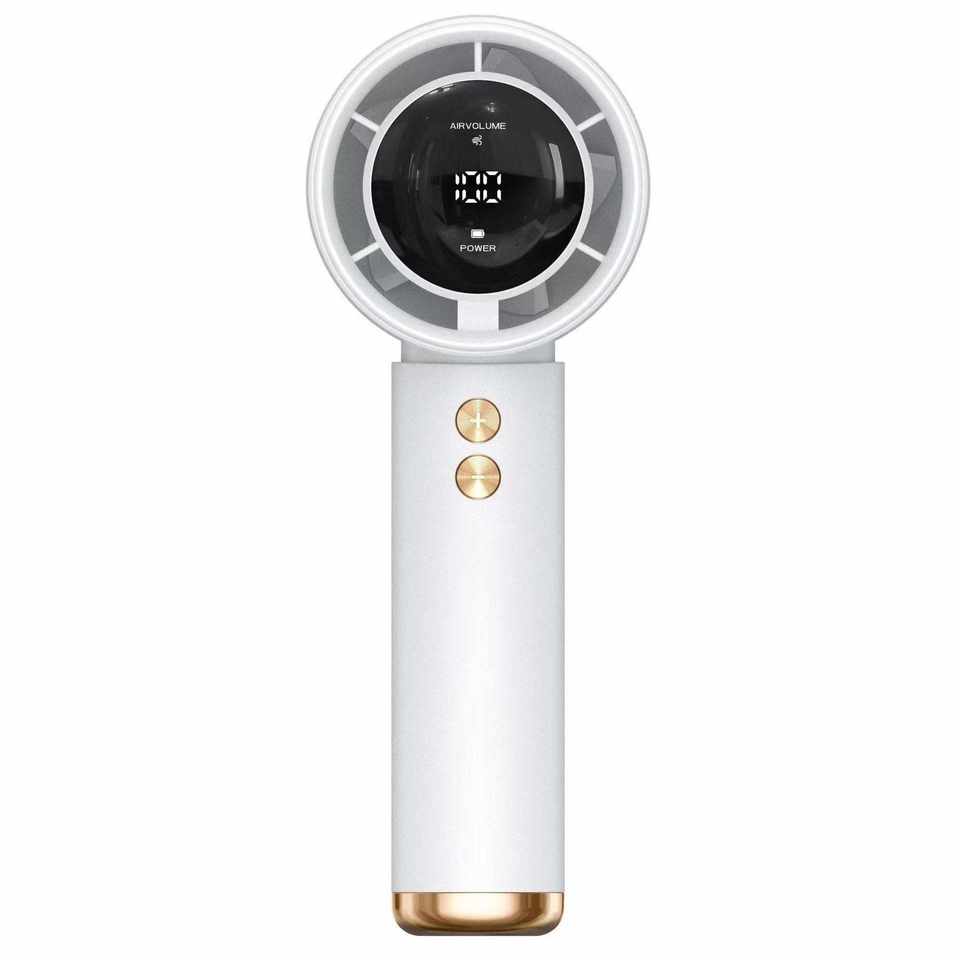 Ventilador de mano mini blanco económico con caja de color, ventilador de mano con logo, ventilador portátil de clase A con soporte.