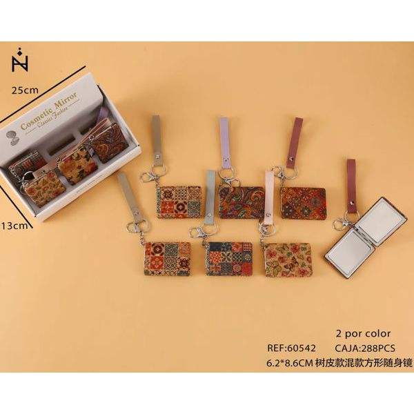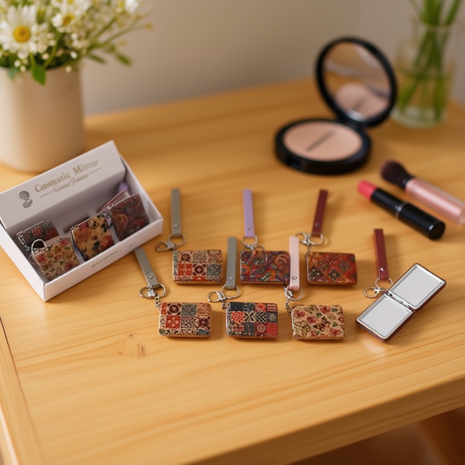 Espejo de Bolsillo Cuadrado con Diseño de Corteza de Árbol, Estilo Mixto, 6.2x8.6cm, Espejo Cosmético para Maquillaje