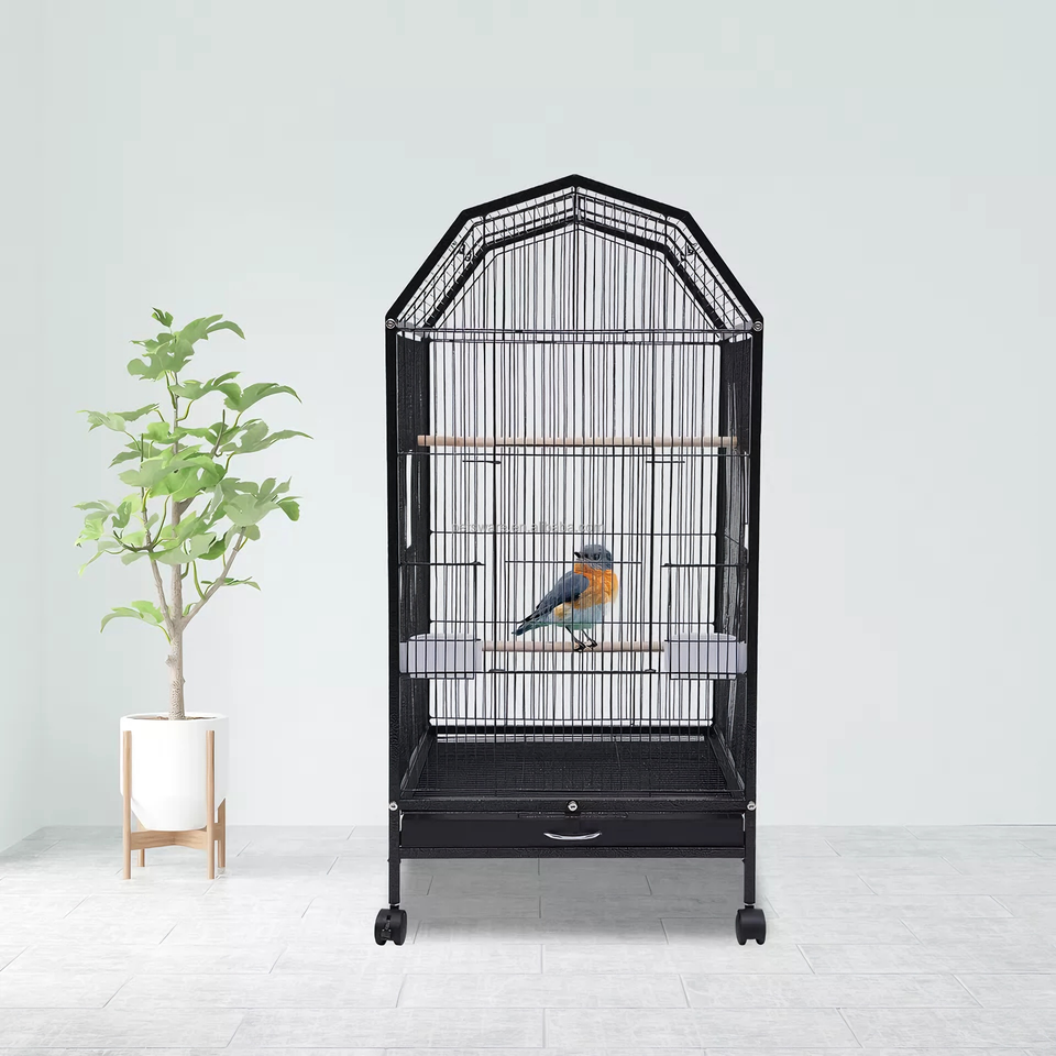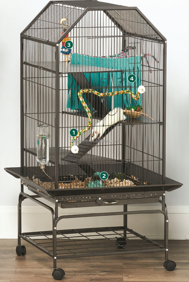 Nombre del producto:Loro grande del hierro labrado y jaula animal pequeña con el Soporte rodante