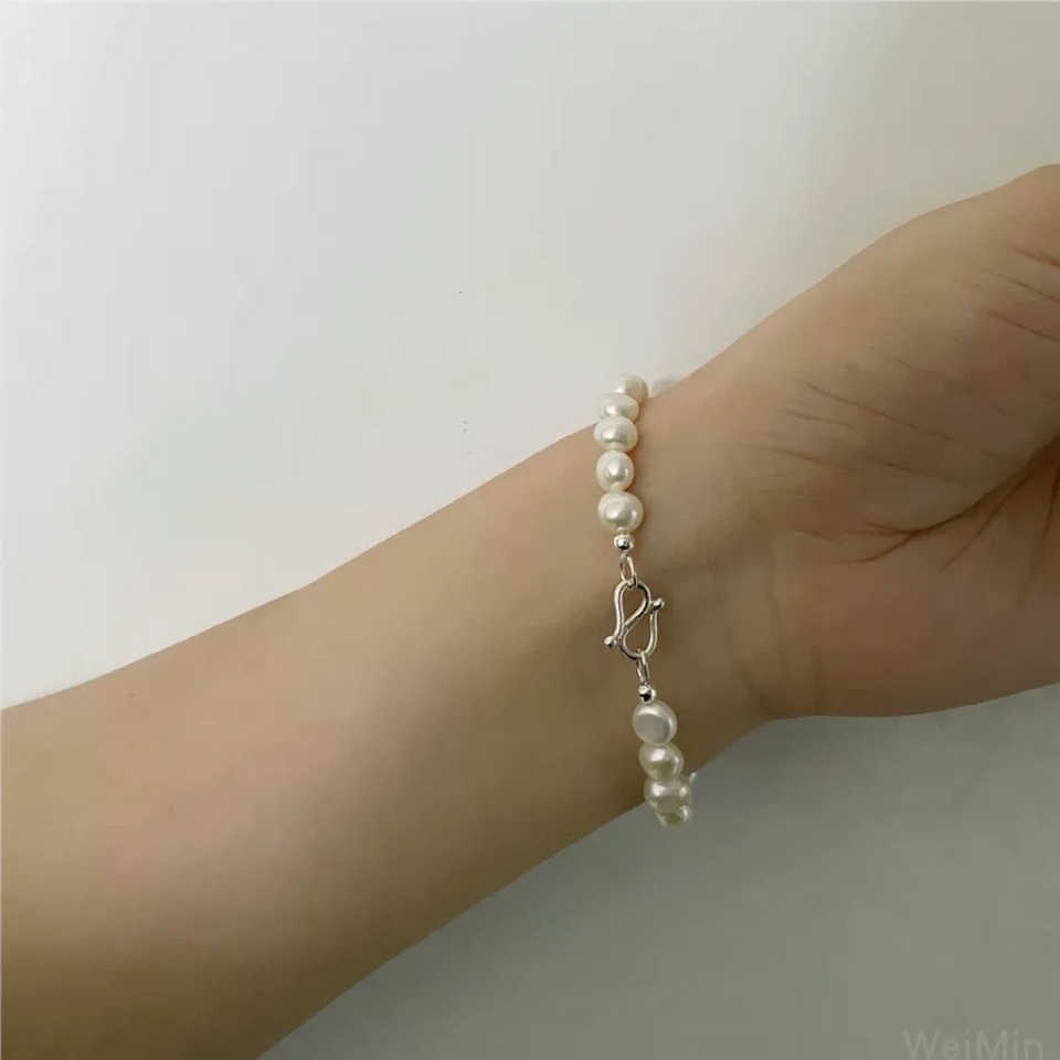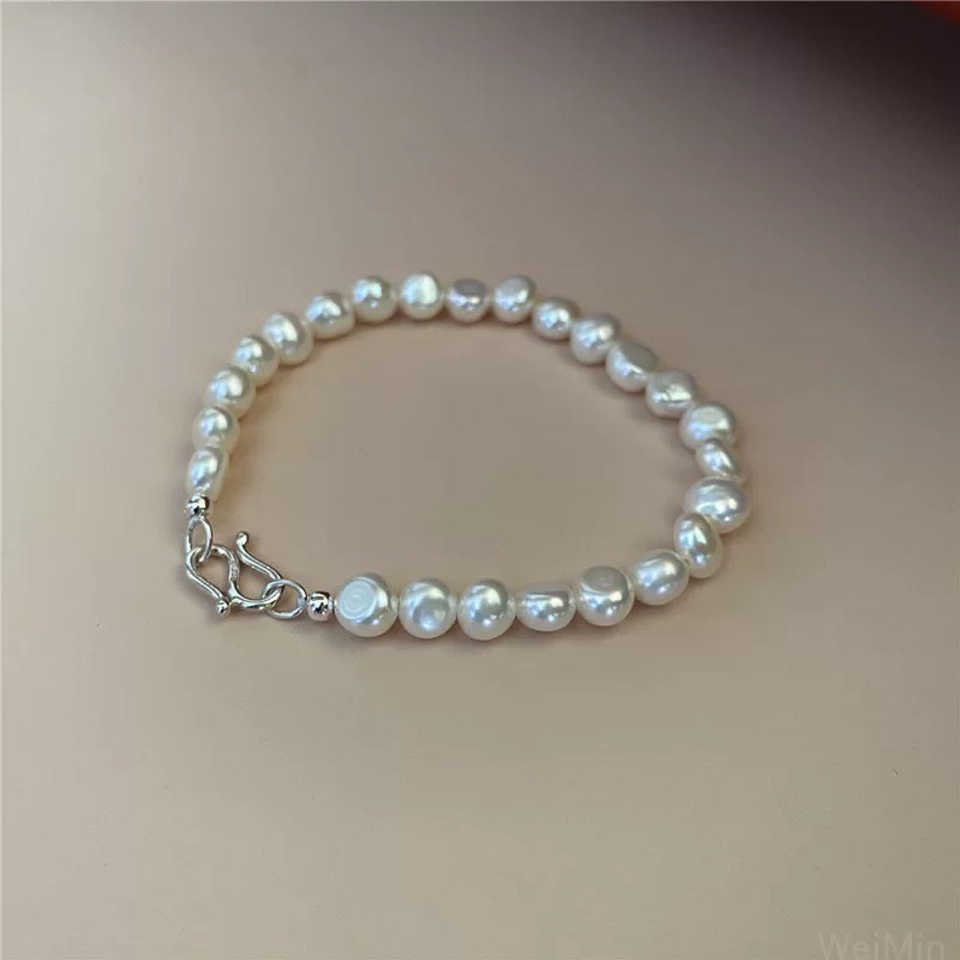 Pulsera de Perlas de Agua Dulce Naturales de Estilo Barroco WENCHI para Mujer, Plata de Ley S925, 17 cm, 30 g, Accesorio de Joyería
