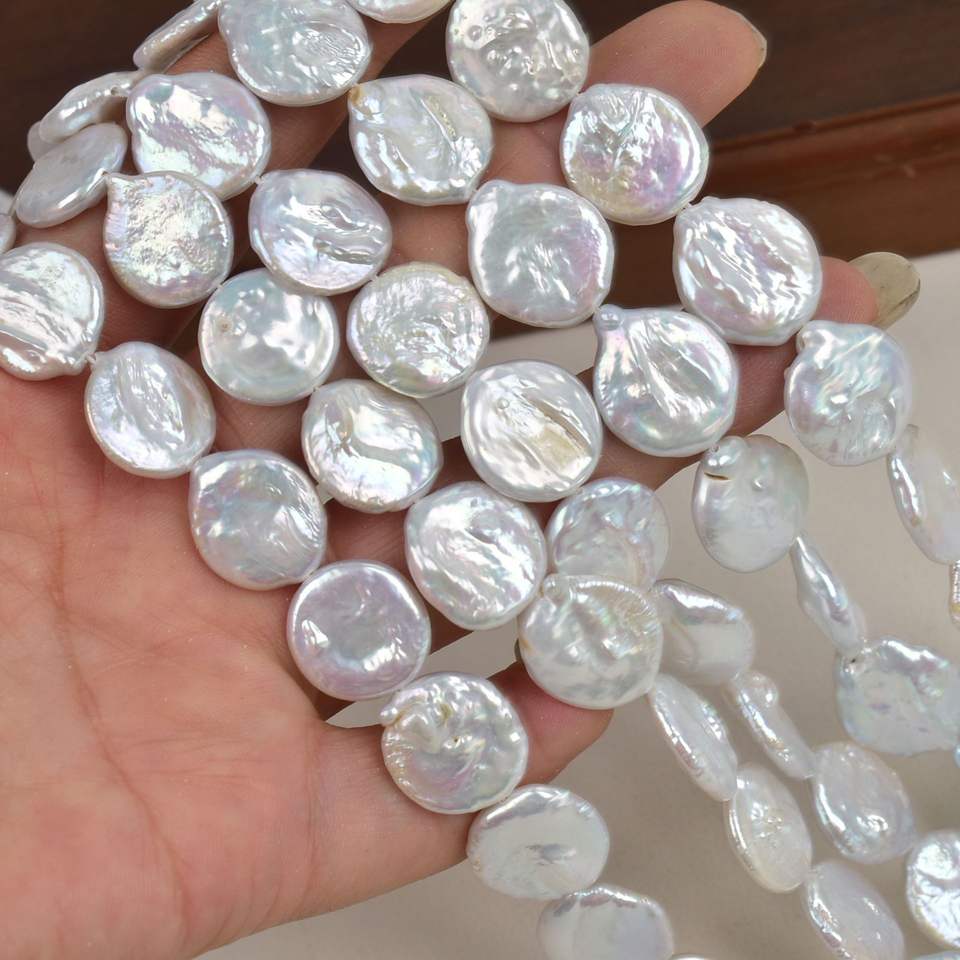 Perlas de Agua Dulce Blancas Barrocas en Forma de Gota de 14-15 mm, Perlas Naturales Sueltas para Hacer Collares y Pulseras, Perla de Botón