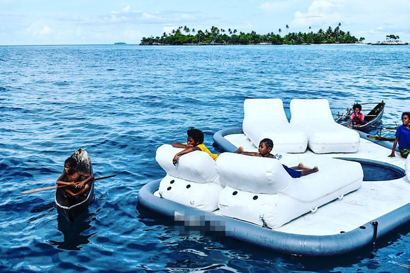 Barry Leisure Land Inflable Swim Island Balsa flotante Lámina inflable Water Jet Ski Dock Flotadores Plataforma con escalera