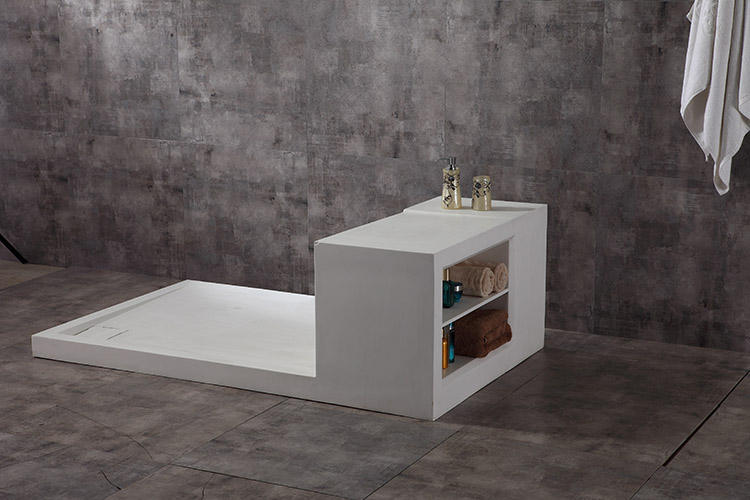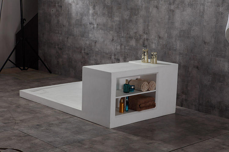 Base y asiento de ducha de piedra sólida rectangular blanca K-T005 para baño, brillante o mate
