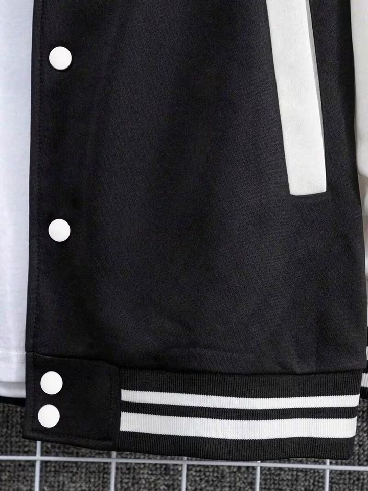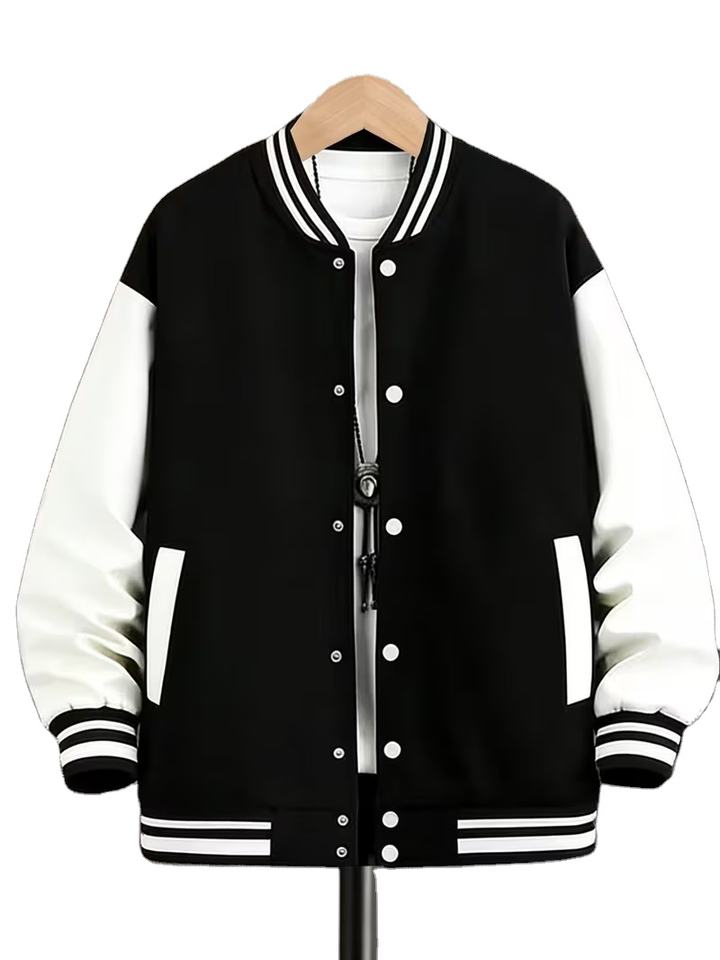 Chaqueta de Béisbol con Cuello de Botones, Corte Holgado, Mangas con Contraste, Cuello Alto y Cierre de Botones, Ropa Deportiva, Bangladesh
